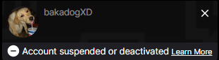 Ban Status: No user logs are found, and the user's Twitch account seems to be suspended.