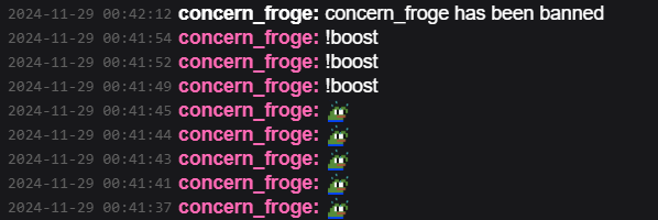 Ban Status: concern_froge remains banned to this day.