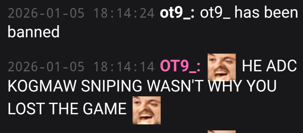 Classic bans for classy messages. Do not post these messages in forsen's chat. :tf: